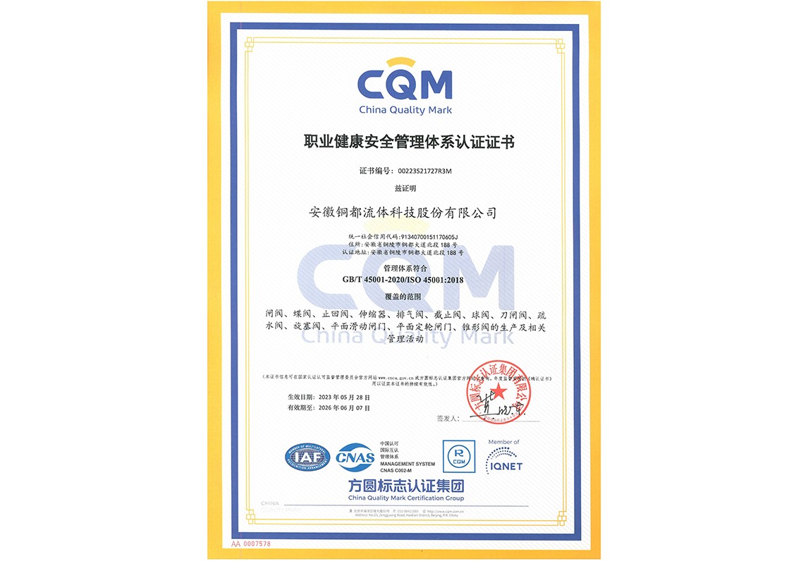 ISO45001職業(yè)健康安全管理體系認(rèn)證證書