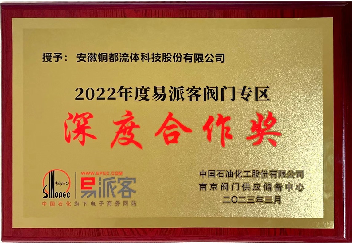 2022年度易派客閥門專區(qū)深度合作獎(jiǎng)