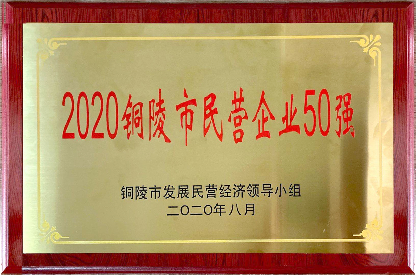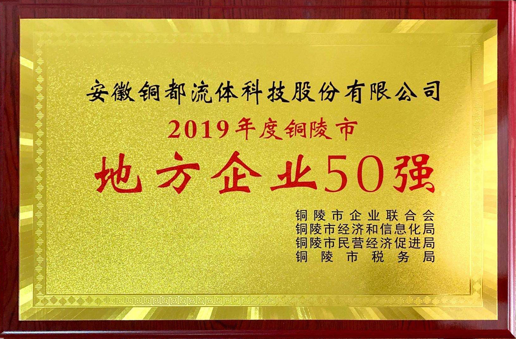 銅陵市發(fā)展民營經(jīng)濟領(lǐng)導(dǎo)小組開展的“2020銅陵市民營企業(yè)50強”評選活動,以企業(yè)2019年度營業(yè)收入為基本標(biāo)準(zhǔn),銅都流體榮獲2020銅陵市民營企業(yè)50強稱號。