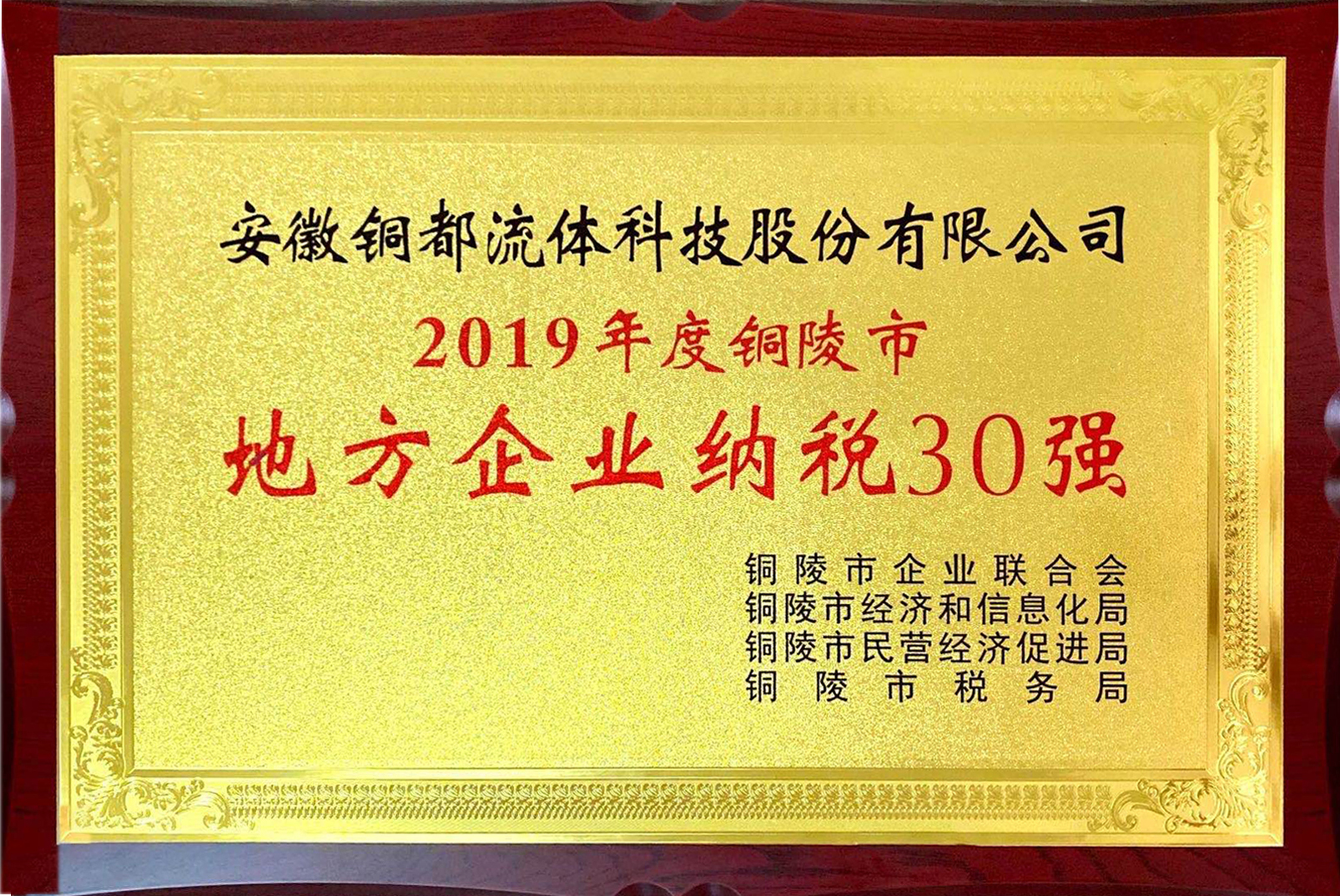 “50強”排序以2019年度地方企業(yè)營業(yè)收入為評選主要標(biāo)準(zhǔn),“納稅30強”以當(dāng)年實際納稅數(shù)額高低排序,由高到低綜合確定。銅都流體榜上有名。
