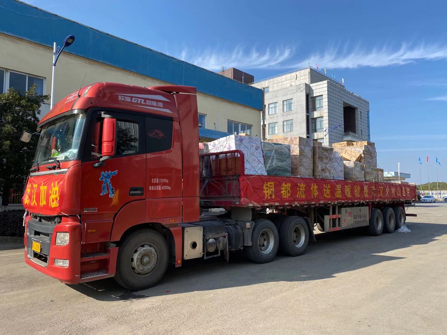1月31日下午,滿載銅都流體全體員工的愛心和支持的捐贈(zèng)物資,從銅陵出發(fā)運(yùn)往武漢,今晚即可抵達(dá)武漢火神山醫(yī)院。