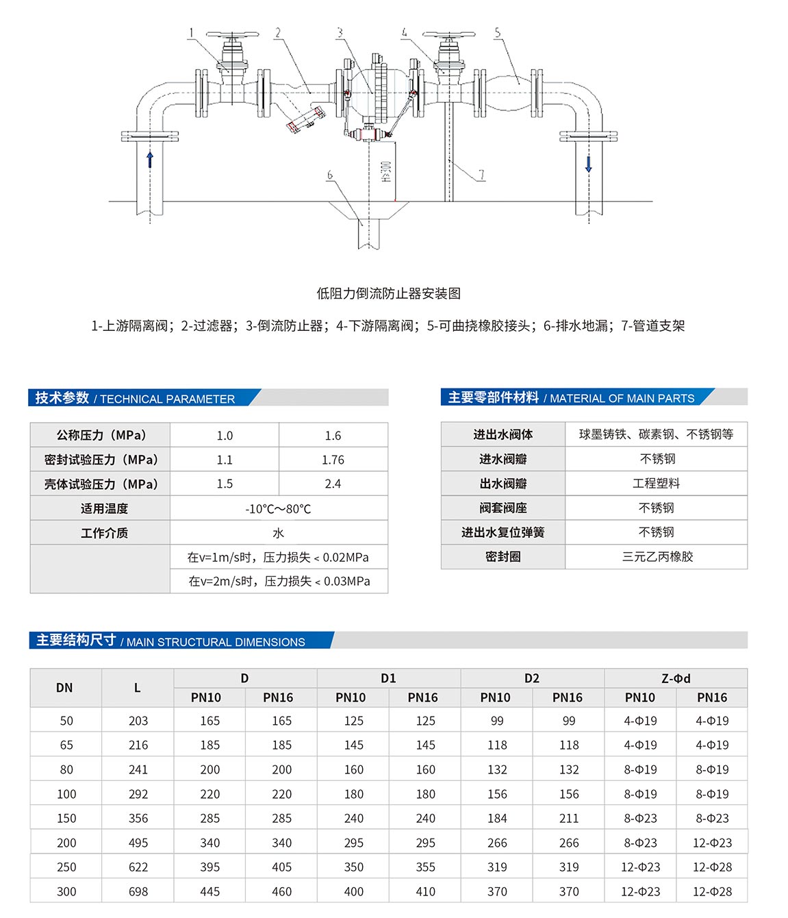 倒流防止器是由兩個相互獨立的止回閥和中間減壓腔內(nèi)一個獨立的水力差動式泄水閥構(gòu)成,三個內(nèi)部閥門除共用閥體外,無任何機械上的聯(lián)系,可靠性較高, 是一種具有限定管道中的壓力水只能單向流動的新型水力控制組合裝置,具有防止倒流污染和虹吸倒流污染的功能,此倒流防止器為市政管網(wǎng)的供水安全提供了合理的解決方案,倒流防止器可廣泛應(yīng)用于城鎮(zhèn)自來水管網(wǎng)、各種水系統(tǒng)及具有回流污染的場所。例如用于高層建筑的供水系統(tǒng)、生活飲用水與中水系統(tǒng)、消防供水系統(tǒng)、空調(diào)制水系統(tǒng)、噴灌灑水系統(tǒng)、工業(yè)取用水系統(tǒng)、醫(yī)療供水系統(tǒng)等,也可用于無負(fù)壓設(shè)備的配套安裝,防止不潔凈的水回流到主水管的現(xiàn)象發(fā)生,保證生活飲用水的衛(wèi)生與安全。