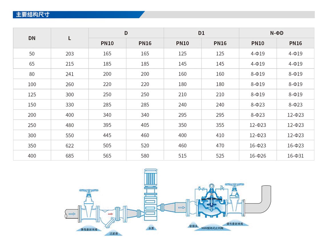 具有開啟和關(guān)閉速度調(diào)控的逆止閥,于啟動或停止抽水機(jī)運轉(zhuǎn)時,可配合現(xiàn)場調(diào)節(jié)至開啟或關(guān)閉速度。可用于高層建筑,減少水錘及水聲現(xiàn)象產(chǎn)生,以達(dá)安靜關(guān)閉之效果。 公稱壓力∶PNI0、PNI6、PN25 隔膜式∶DN50~DN500